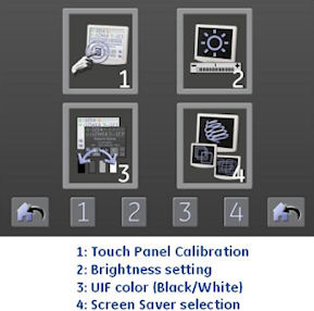 Select screen saver from six category, and customer can set the timer. Timer setting: 1~60 min.