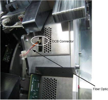 - Disconnect the fiber optic from DCB board.