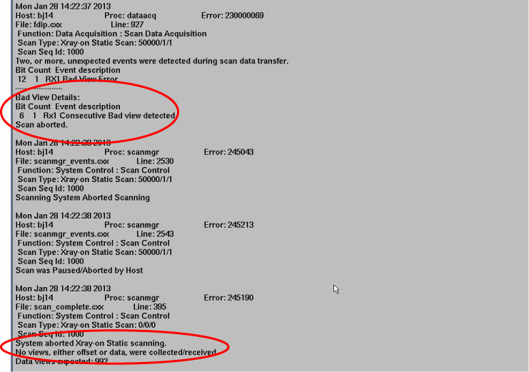 If system can not scan normally, or scan is paused/aborted, and the similar error message shown in Figure 1, so DIP, Slip Ring and DCB are maybe disable.