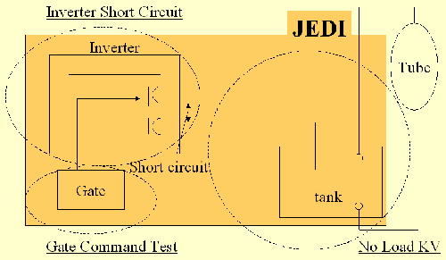 In this test, the inverter is commanded at a fixed frequency and is loaded with a short circuit. Verification is made that inverter currents are correctly set. At the same time verification is made that no high voltage is measured. This test is performed without connecting the HV Tank to the inverter so that no X-ray is generated. Anode rotation and filament drive are not activated during this test.