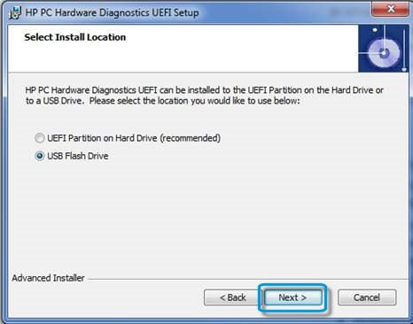 Download and install the HP Hardware Diagnostics UEFI and save it to a convenient location on your hard drive. Make a note of the location where the downloaded file is saved.