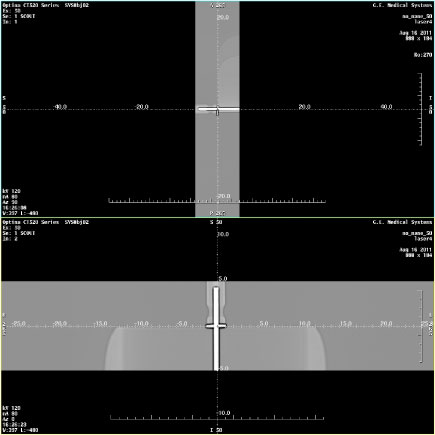 - The last adjustment is the un-referenced Coronal laser to the Reference Coronal laser chosen in Step 7 (see Alignment Lights Visual Checks).