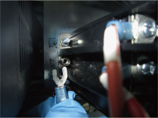 - Remove the gantry left side, top and front covers. Connect the cover E-stop circuit to the terminators on the gantry.