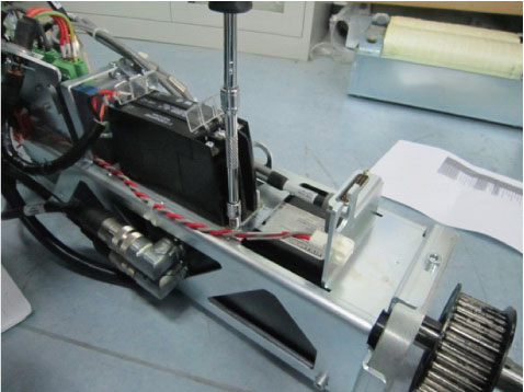 - Remove gantry right side cover and disable axial drive and HVDC