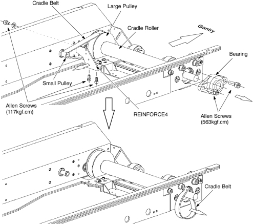 3. Slide the cradle motor toward the Gantry, to remove tension from the drive belt.