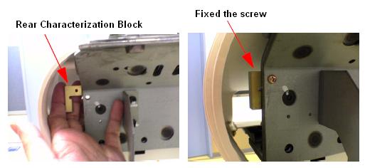 - Using the Service Switches (Fast and Slow), move the cradle IN until the cradle and front characterization block just touch.