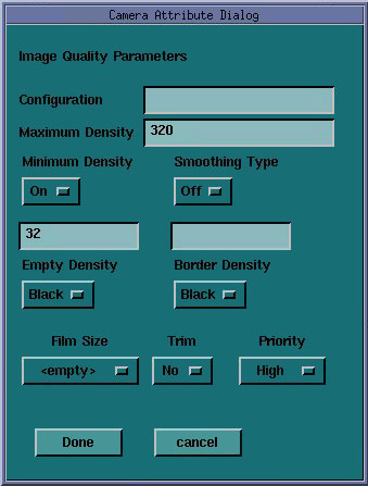 - Empty Density - This parameter sets the density for empty film viewports. Typically, Black is used but White is an available option. The minimum and maximum density values are used as the representation.