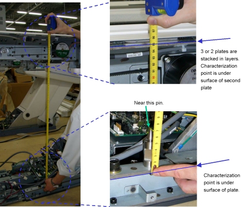 - Using the Service Switch (ACTION), move the table at 650 ± 0.5mm of the distance between characterization points.