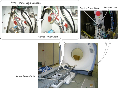 7. Unplug the service power cable from the service outlet of the Gantry, after completion of the Table elevation.