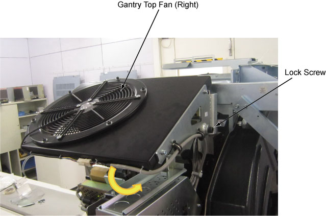 - Loosen the lock screw of the top fan assembly, and rotate the