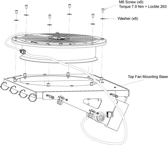 - Remove six M6 screws that holding the fan to the top fan frame,