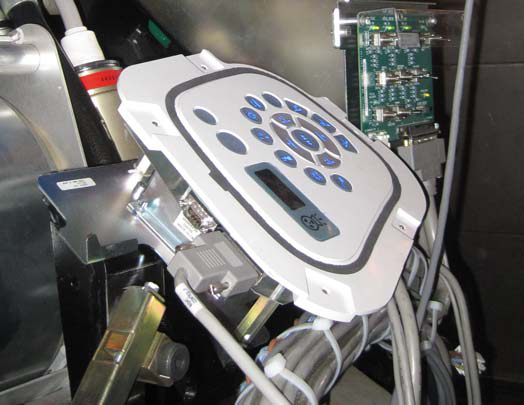 - Install Gantry Display in front cover. Secure the 6 thumbscrews. With a flat-blade screwdriver, gently tighten past finger-tight.