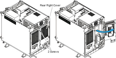 - Loosen two screw of the rear right cover, and open the rear