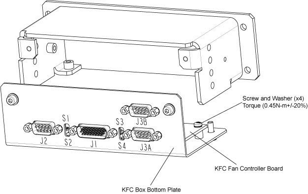 - Secure the new KFC fan controller board to the box bottom plate by using four screws and washers. (Torque: 0.45N-m +/- 20%)