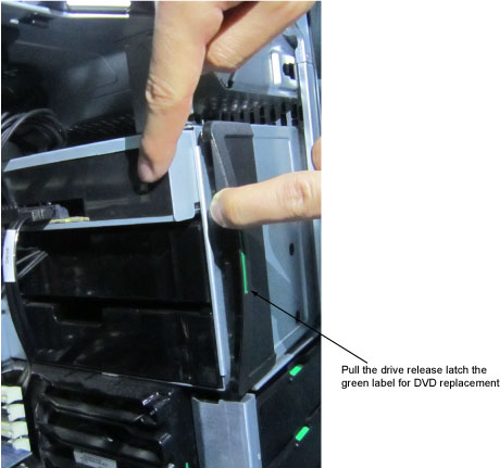 - Pull the drive release latch, and pull out DVD drive.