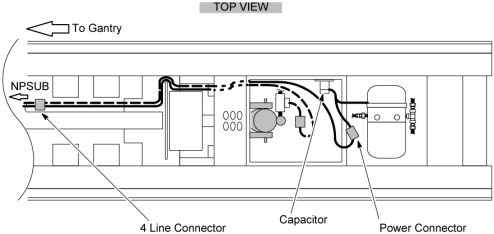 - Disconnect the 4–line connector leading from the NPSUB to the pump capacitor.
