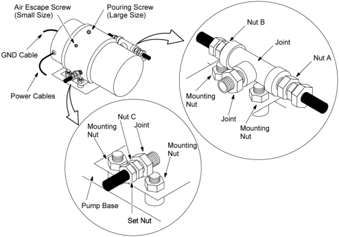 - Remove the pump base by unscrewing the four nuts, and transfer