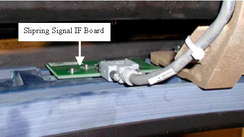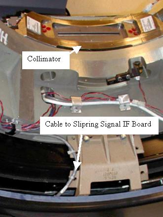 4. The Signal IF board is mounted on the gantry side surface of the Slipring. Manually rotate the gantry such that the filter board is located on the bottom. The IF board is on the Slipring at the same location as the collimator. See Figure 1 below.