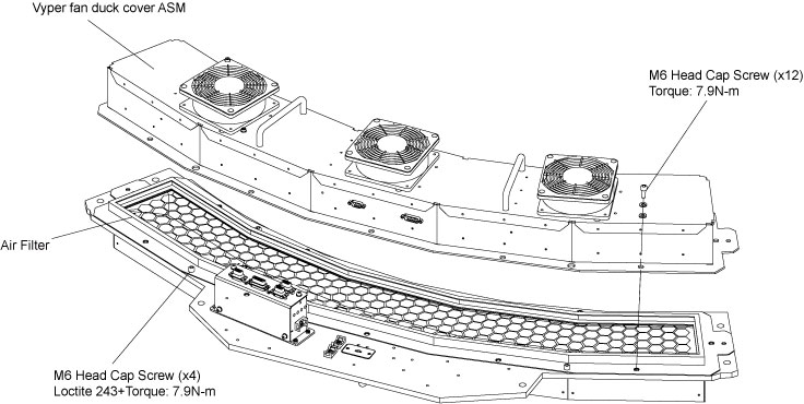 - Reinstall the Vyper fan duct cover asm by screwing all M6 screws (Torque: 7.9N-m).