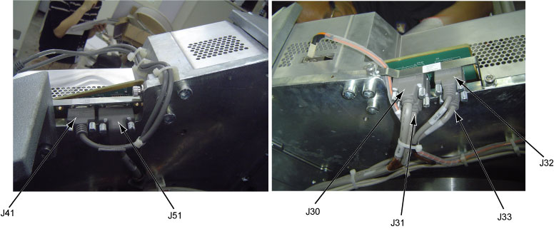 - Reconnect the cable connectors to the KFC J2 and J3A and tie cables with cable clamps.