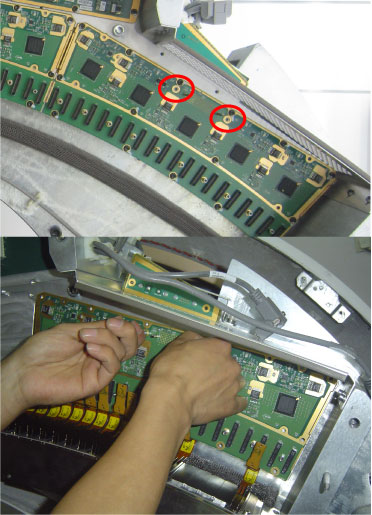 - Reconnect the flex cables to the DIFB, then secure the plates to fix them. (Torque: 1.0 N-m)