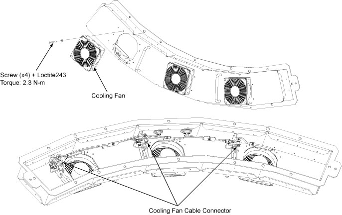 - Get new cooling fan and secure it with the fan guards by four M4 screws. (Torque: 2.3N-m + Loctite243)