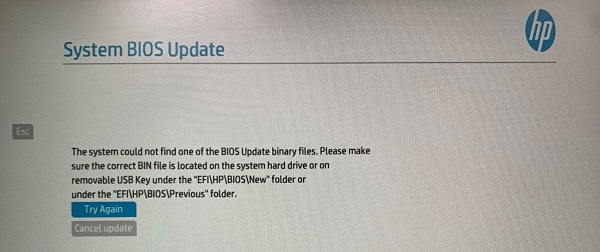 - If no BIOS USB media is found, you are prompted to insert one and restart the computer.