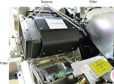 Remove the four screws on the top of the assembly and clean the filters (see Figure 1).