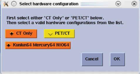 In the Hardware Configuration window, select the appropriate hardware configuration for the System, DAS and Console type. Click OK when done.