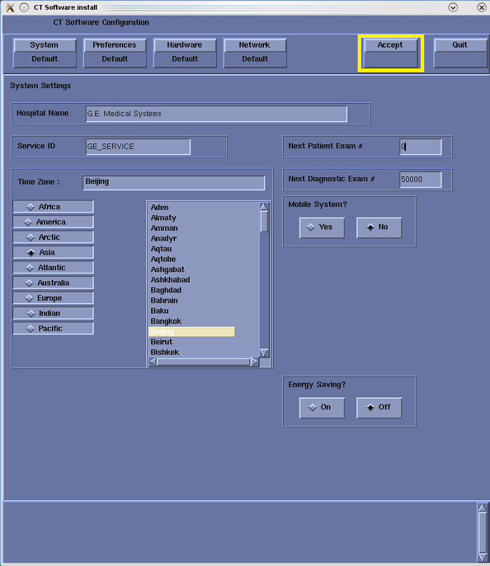 After manually configuring the system, click Accept and return to Applications Software Load, in the Load From Cold (LFC) procedure.