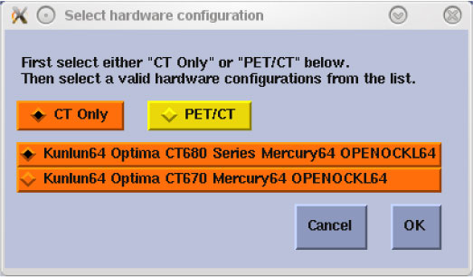 In the Hardware Configuration window, select the appropriate hardware configuration for the System, DAS and Console type. Click OK when done. Refer to Table 1 for hardware configuration selection.