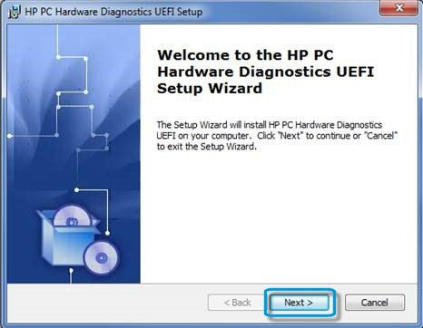 After you run the .exe file, the HP PC Hardware Diagnostics UEFI Setup automatically opens.