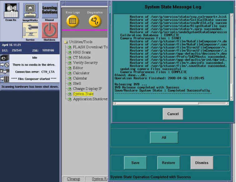- Verify that the "Restore" of System State was successful. If not, restore the System State again. A message at the end of the Restore should display: Save/Restore System State Completed Successfully.