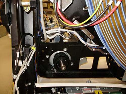 - Guide the motor assembly out of the gantry and set aside. Leave the hoist assembly set up as it will be required for the installation of the new drive.