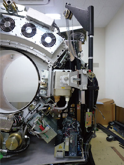 - Fix the lower slip ring cover and install the tilting gantry safety cover.