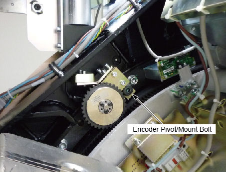 - Slide shoulder bolt into encoder assembly so the threads are sticking out the back.