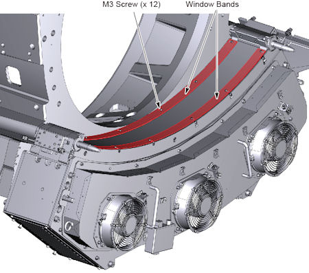 - Install the detector window bands (to and bottom), and tighten the 12 screws.