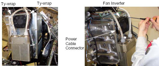 - Cut any ty-wraps holding the cables to the Fan Inverter.