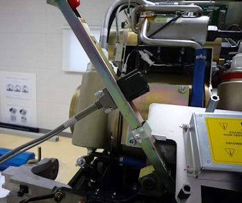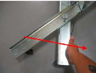 Disengage the locking mechanism on the upper cantrell brackets by using your thumb to slide the trigger (red lever) back. This will release the locking mechanism and allow the cantrell to be rotated upwards with steady and firm pressure.