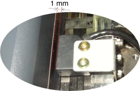 Position the new Linear Scale Assy using the thickness gauge, and verify that the position of the sensor is the following: