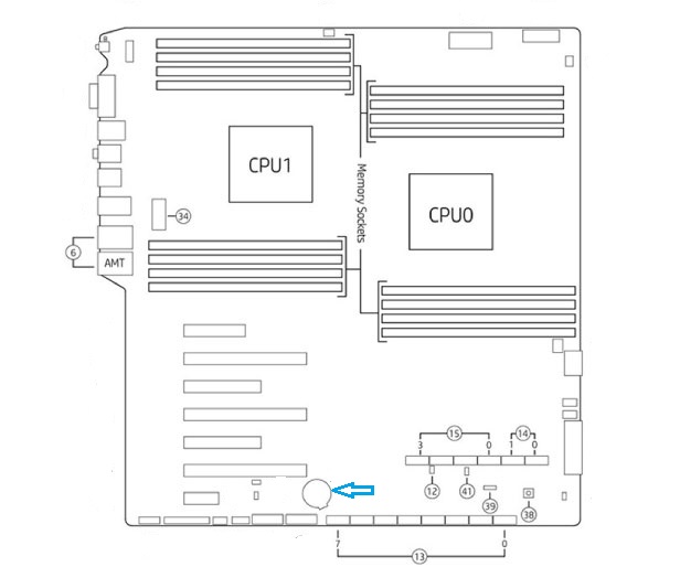 - Install replacement CMOS Battery on Z840 Motherboard.