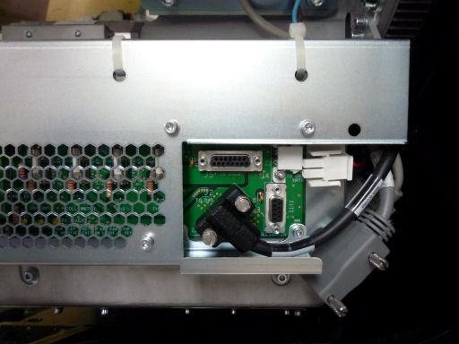 - Remove the 8 mounting screws attaching the power supply assembly to the cast frame and slide the supply out the front of the gantry.
