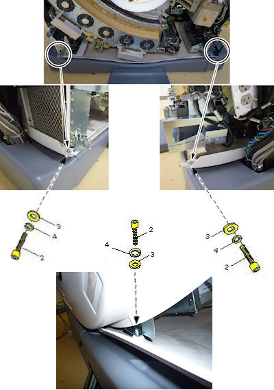 - To remove the gantry tilting assembly bottom cover, remove the 4 M6 screws as follows.