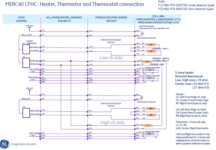 Since CFHC does not have current sensor for rail heater, the board cannot detect the rail heater open/short issue. If one or more failure is detected, heater or thermistor may be damaged. The following material shows the heater connection wiring diagram. And System level resistance table.