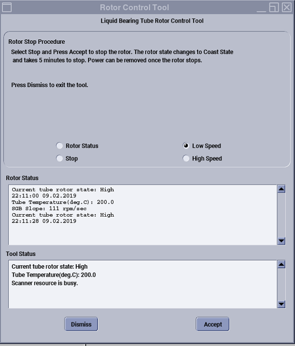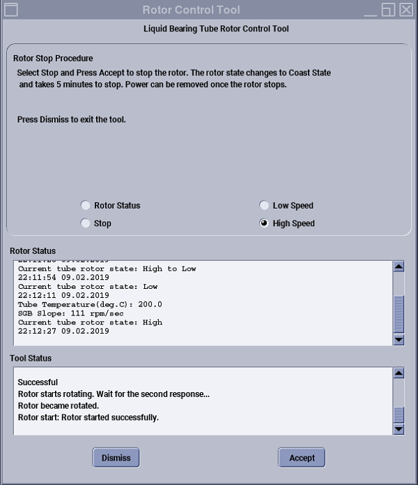 - Choose High Speed button and Accept to bring the rotor High Speed from Stop, Coasting or Low Speed.