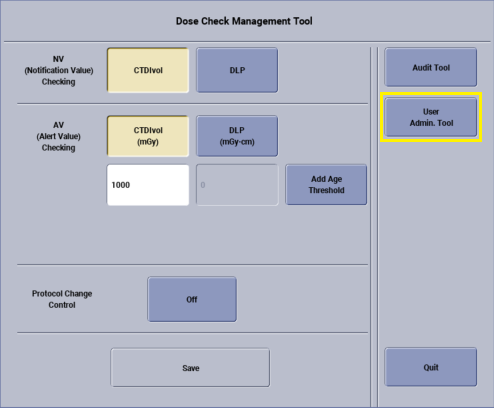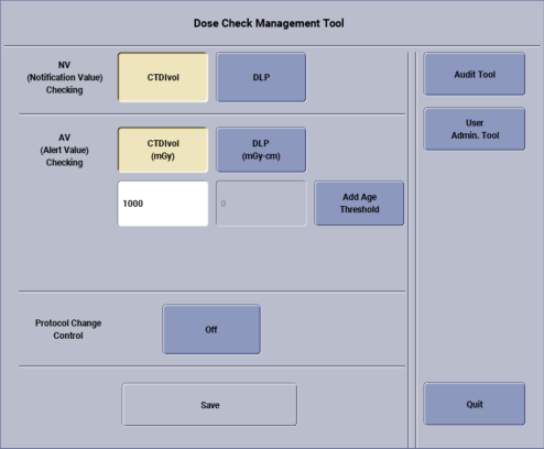 Figure 3. Dose Check Management User Interface (Default Configuration Shown)