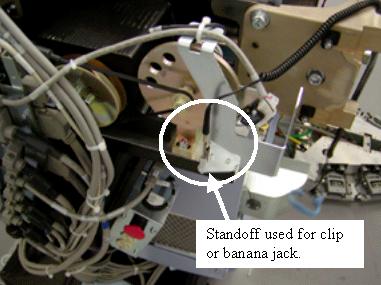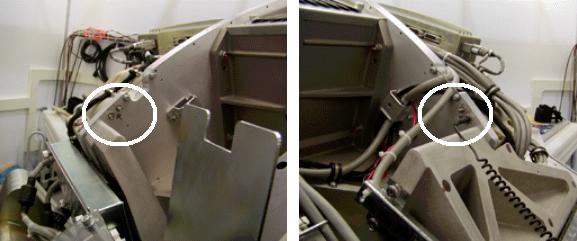 The CT gantry has defined ESD attachment points that allow easy attachment for banana clip and alligator clip style connections. There are points on the stationary frame on each side of the gantry and rotating assembly behind the DAS plate. The stationary frame locations should always be used if the length of your ESD strap is sufficient.