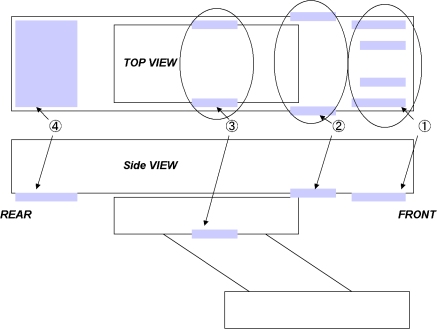 There are several touch switches equipped on the Table to prevent pinching of a person or object. Six of them are the tape switches located around the TOP FRONT COVER. There is also one mechanical switch located at rear of the table.
