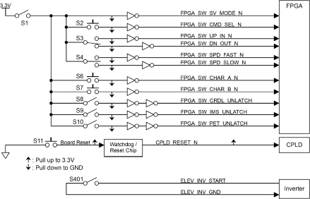 For Service and Engineering use, the GTCB3 rovides some switches as shown below.