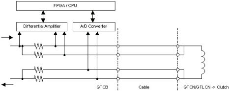 To avoid unexpected release of the clutch caused by cable failure or disconnection, the Cradle Clutch control line is duplicated, and the current is watched by A/D converter on the GTCB3.